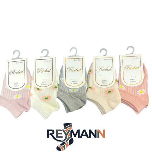 جوراب نوزادی نیمساق گلدوزی دستی (5جفتی) پنبه، سایز 0، طرح گل افقی
