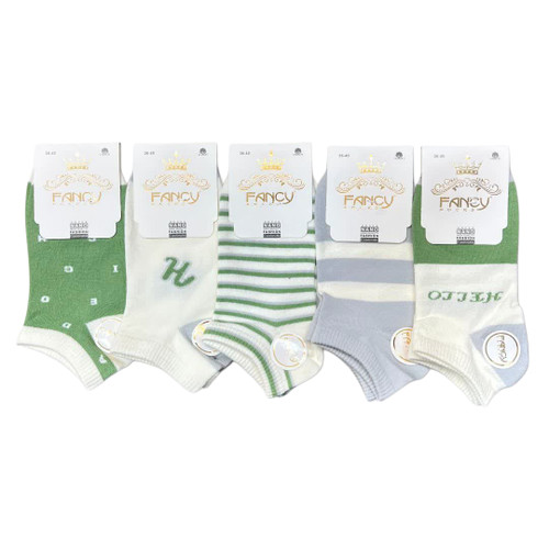جوراب زنانه مچی طرحدار (5جفتی) پنبه سایز 36 تا 40، طرح کبریتی طیف سبز
