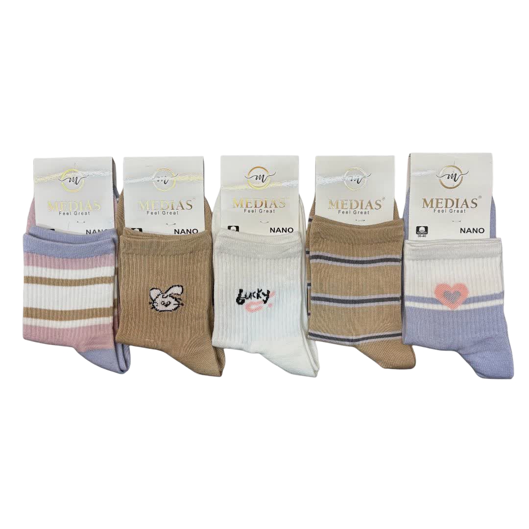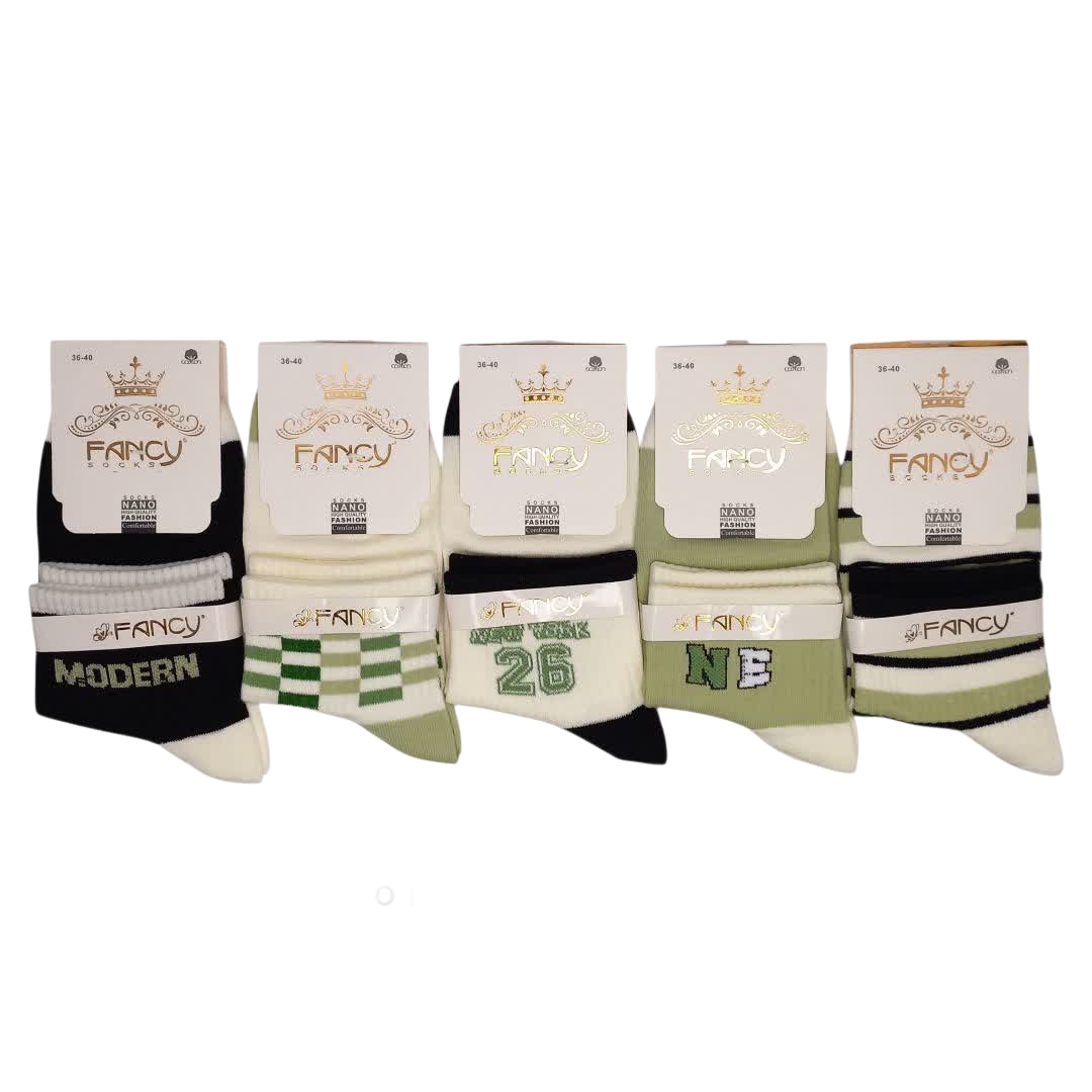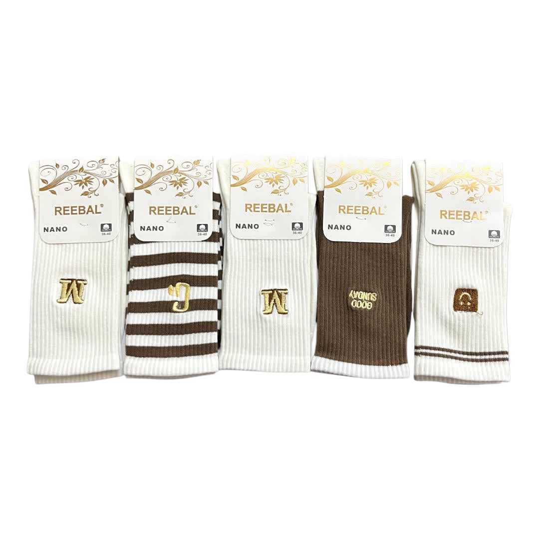جوراب زنانه مچی طرحدار (5جفتی) پنبه سایز 36 تا 40، طرح کش انگلیسی NINE