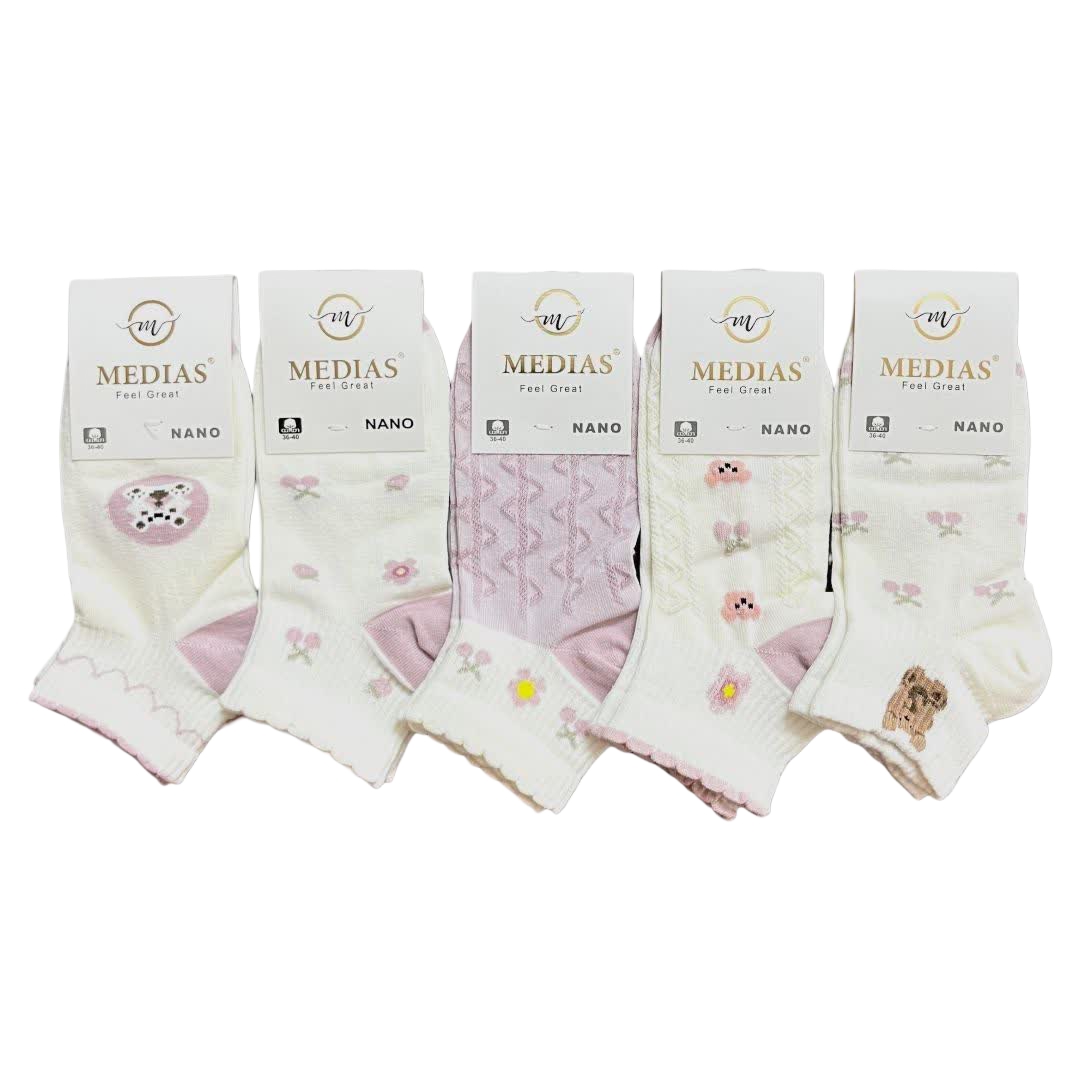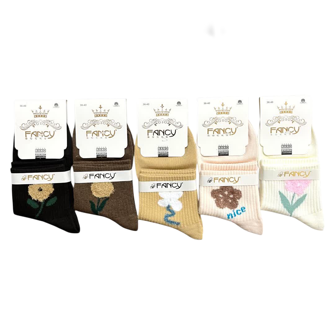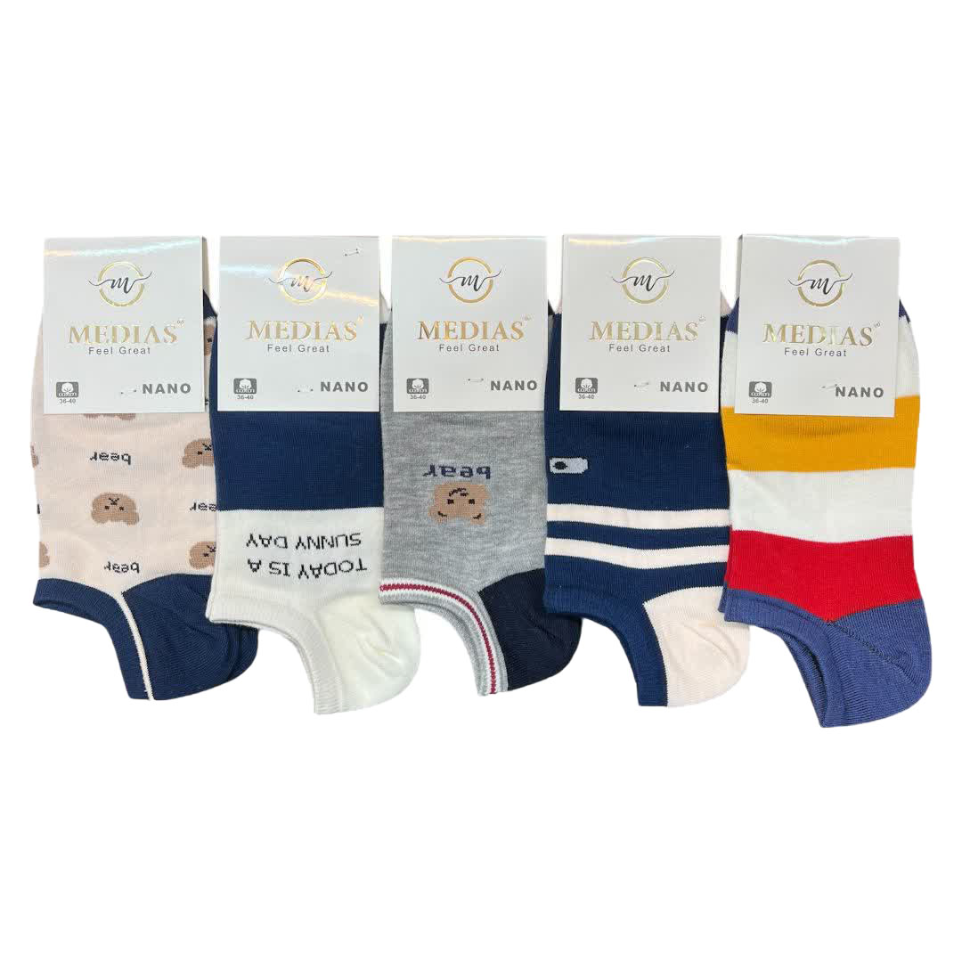 جوراب زنانه مچی طرحدار (5جفتی) پنبه سایز 36 تا 40، طرح کش انگلیسی NINE