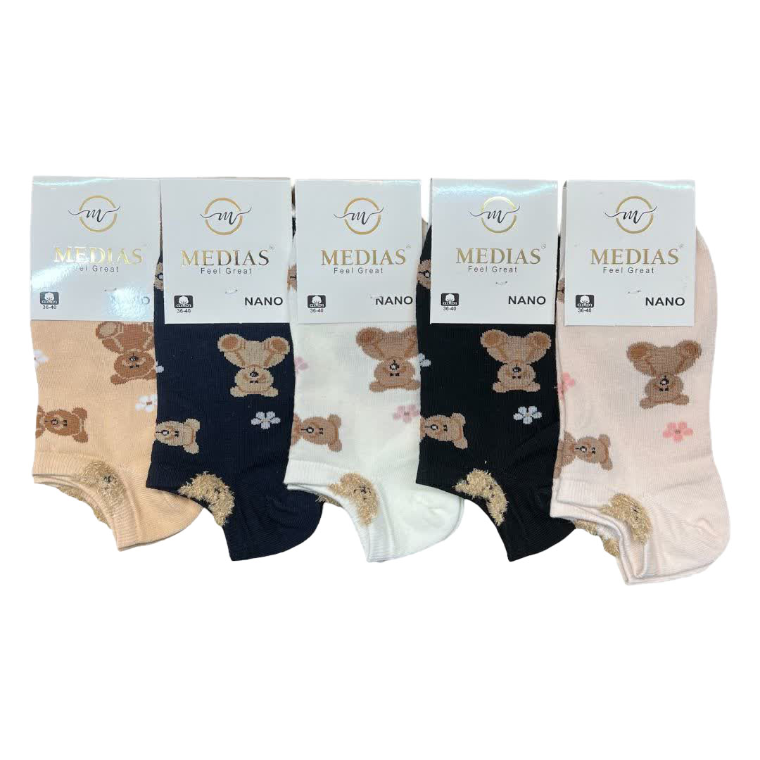 ناموجودجوراب زنانه مچی طرحدار (5جفتی) پنبه سایز 36 تا 40، طرح تدی معروف