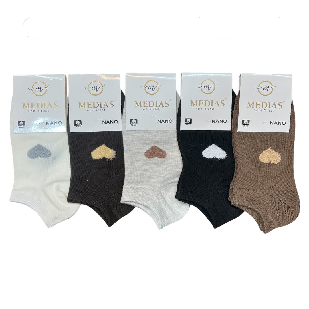 ناموجودجوراب زنانه مچی طرحدار (5جفتی) پنبه سایز 36 تا 40، طرح تک قلب بوکله