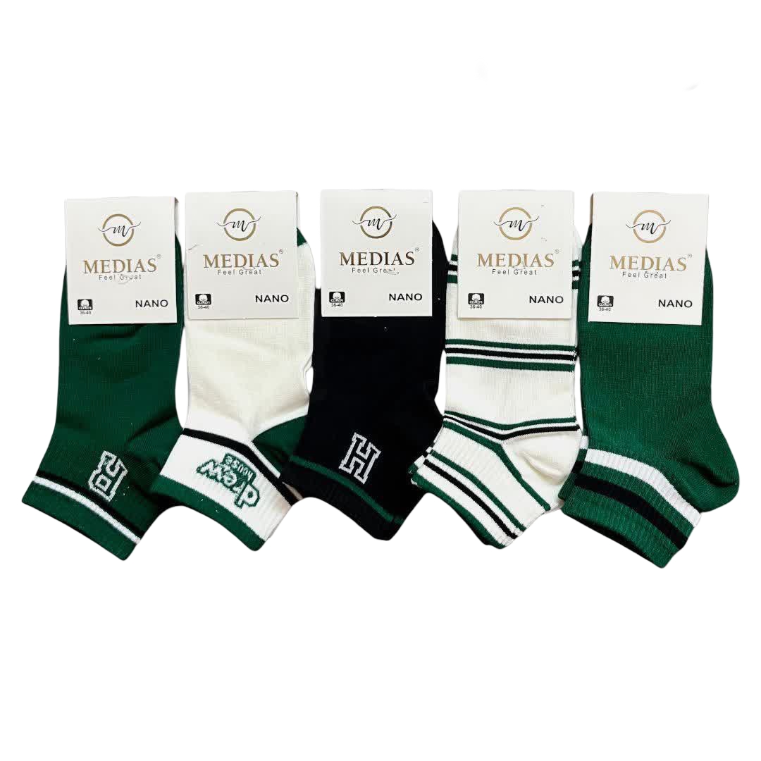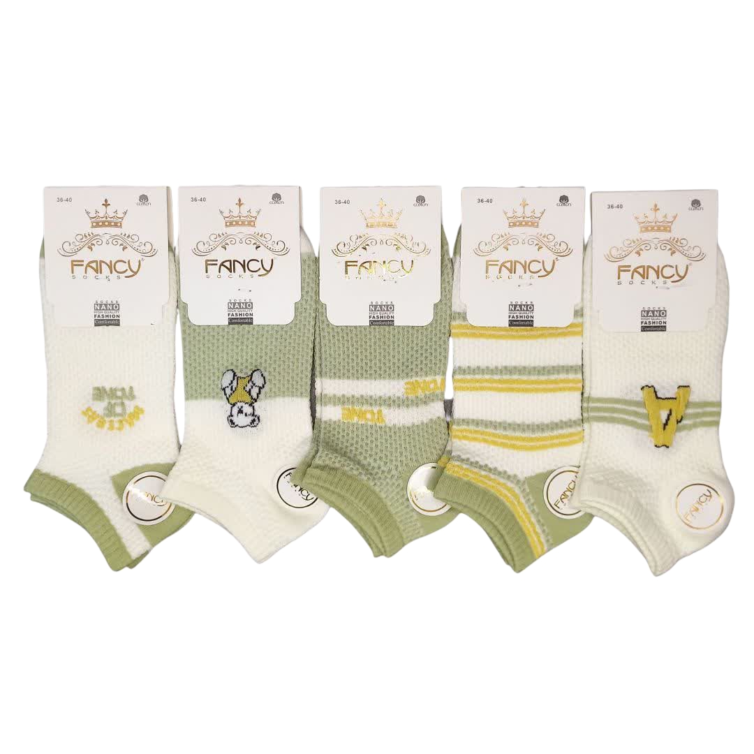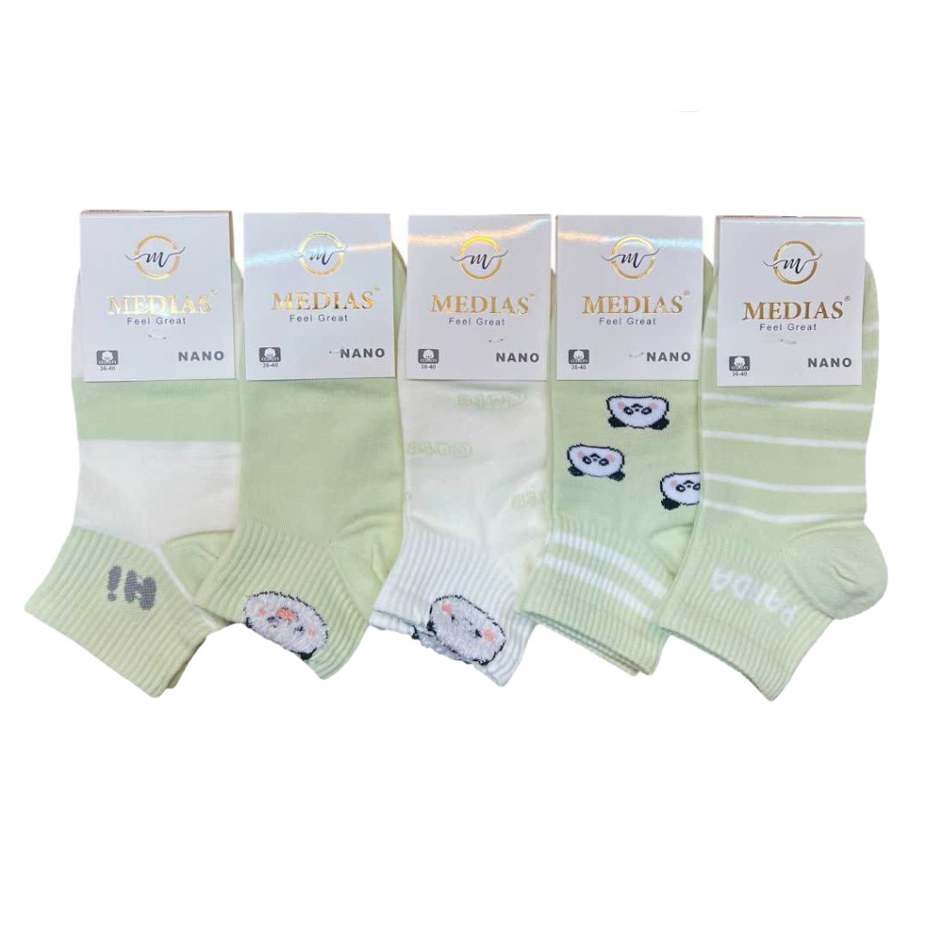 جوراب زنانه مچی طرحدار (5جفتی) پنبه سایز 36 تا 40، طرح کبریتی طیف سبز
