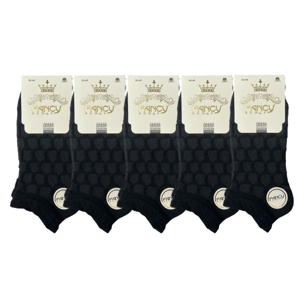 ناموجودجوراب زنانه مچی طرحدار (5جفتی) پنبه سایز 36 تا 40، طرح لانه زنبوری مشکی