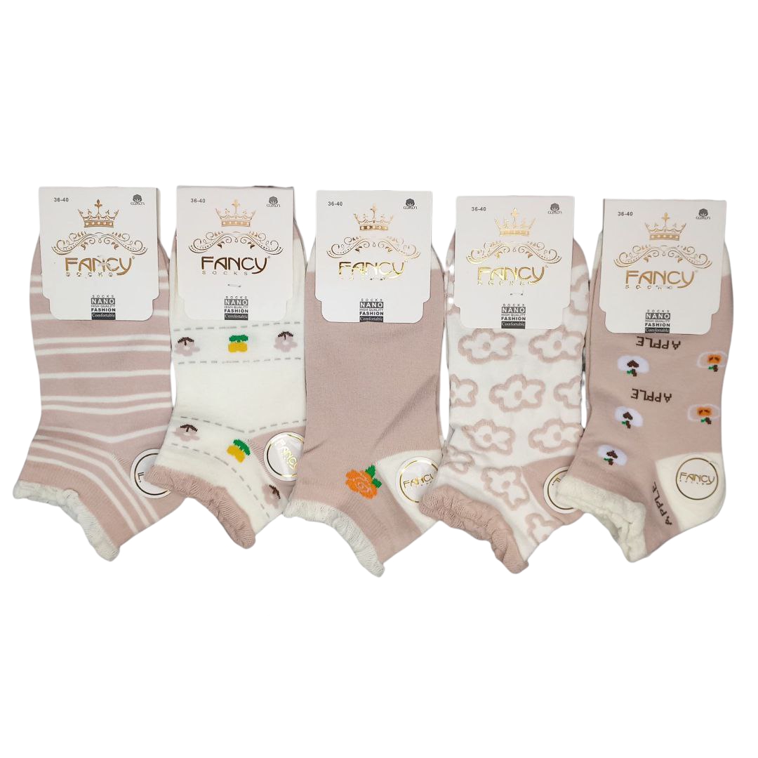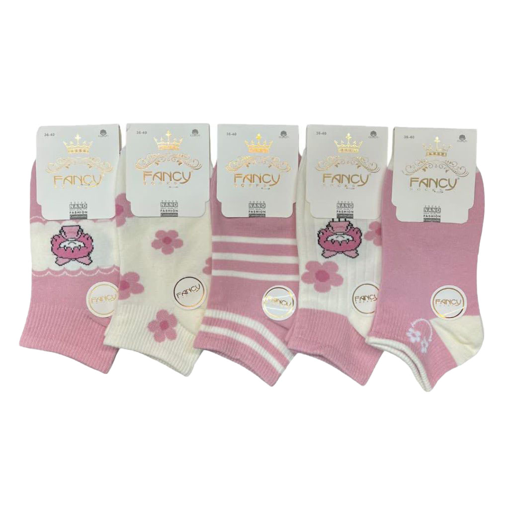 جوراب زنانه مچی طرحدار (5جفتی) پنبه سایز 36 تا 40، طرح کبریتی پاستیلی