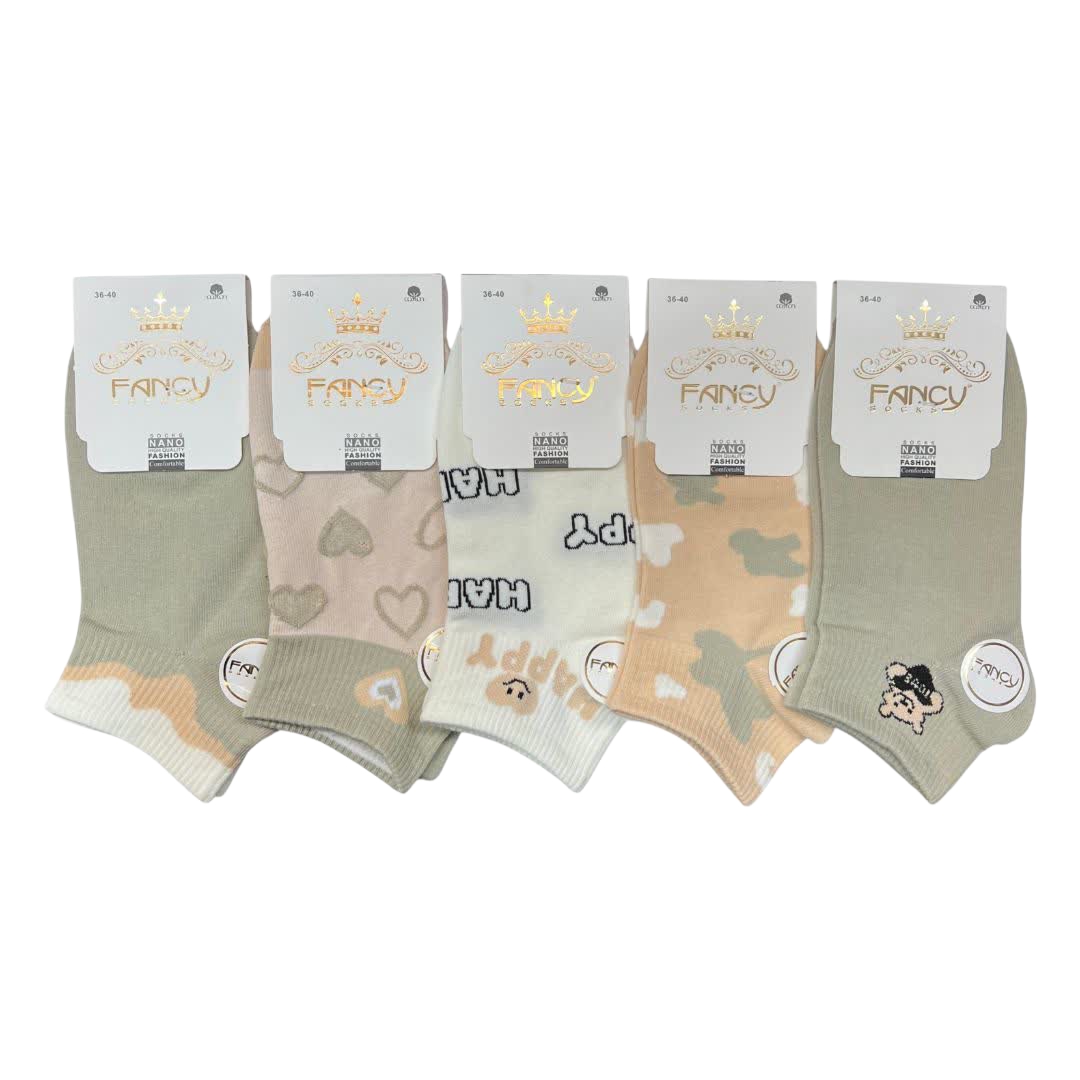 ناموجودجوراب زنانه نیمساق طرحدار (5 جفتی) پنبه سایز 36 تا 40 طرح lucky