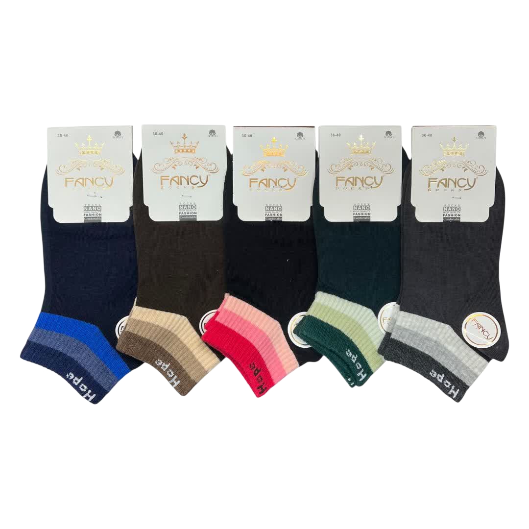 ناموجودجوراب زنانه نیمساق طرحدار (5 جفتی) پنبه سایز 36 تا 40 طرح دو خط رنگی