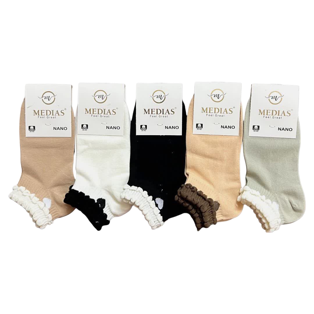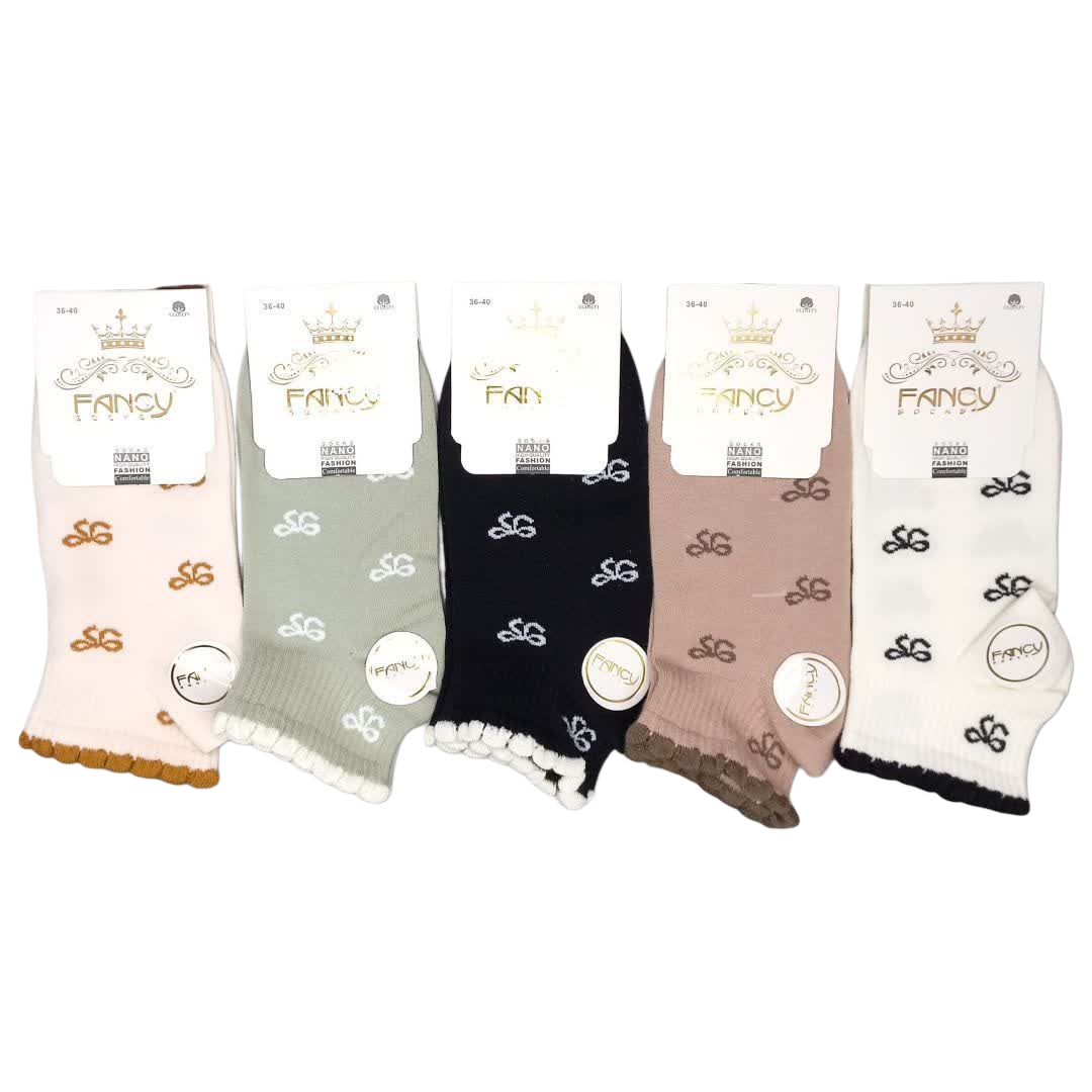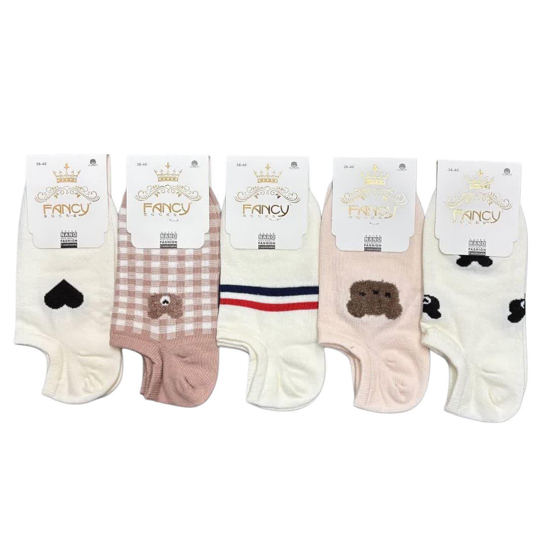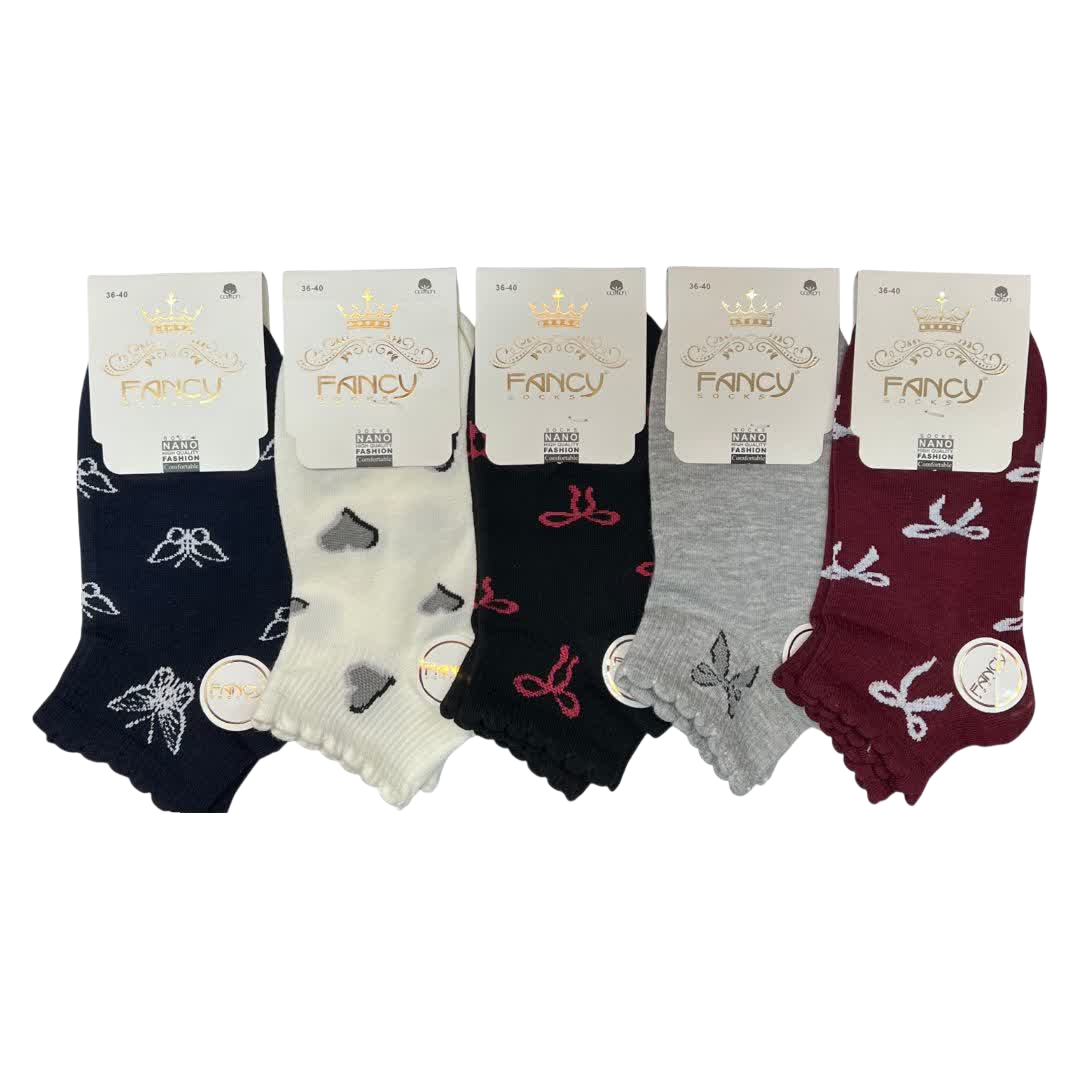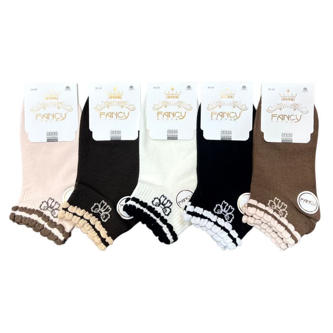 ناموجودجوراب زنانه مچی طرحدار (5جفتی) پنبه سایز 36 تا 40، طرح دوکش پفکی پاپیون
