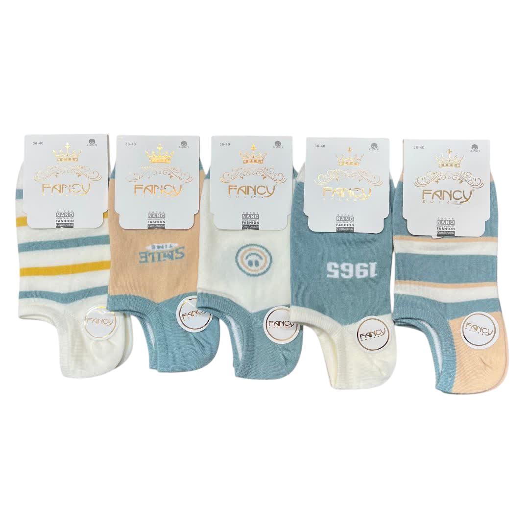 ناموجودجوراب زنانه نیمساق طرحدار (5 جفتی) پنبه سایز 36 تا 40 طرح (طیف سرمه ای)