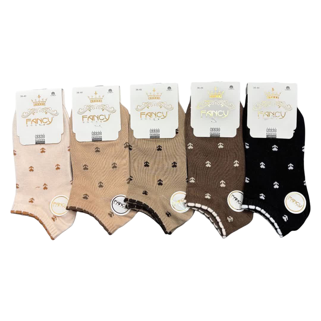 ناموجودجوراب زنانه نیمساق طرحدار (5 جفتی) پنبه سایز 36 تا 40 طرح پاپیون خالدار