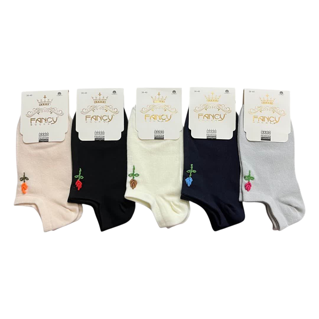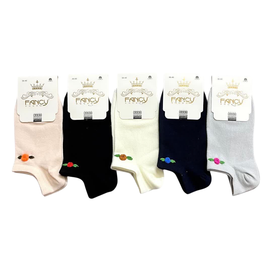 ناموجودجوراب زنانه مچی گلدوزی دستی (۵جفتی) پنبه سایز 36 تا 40، طرح گل رز رنگی