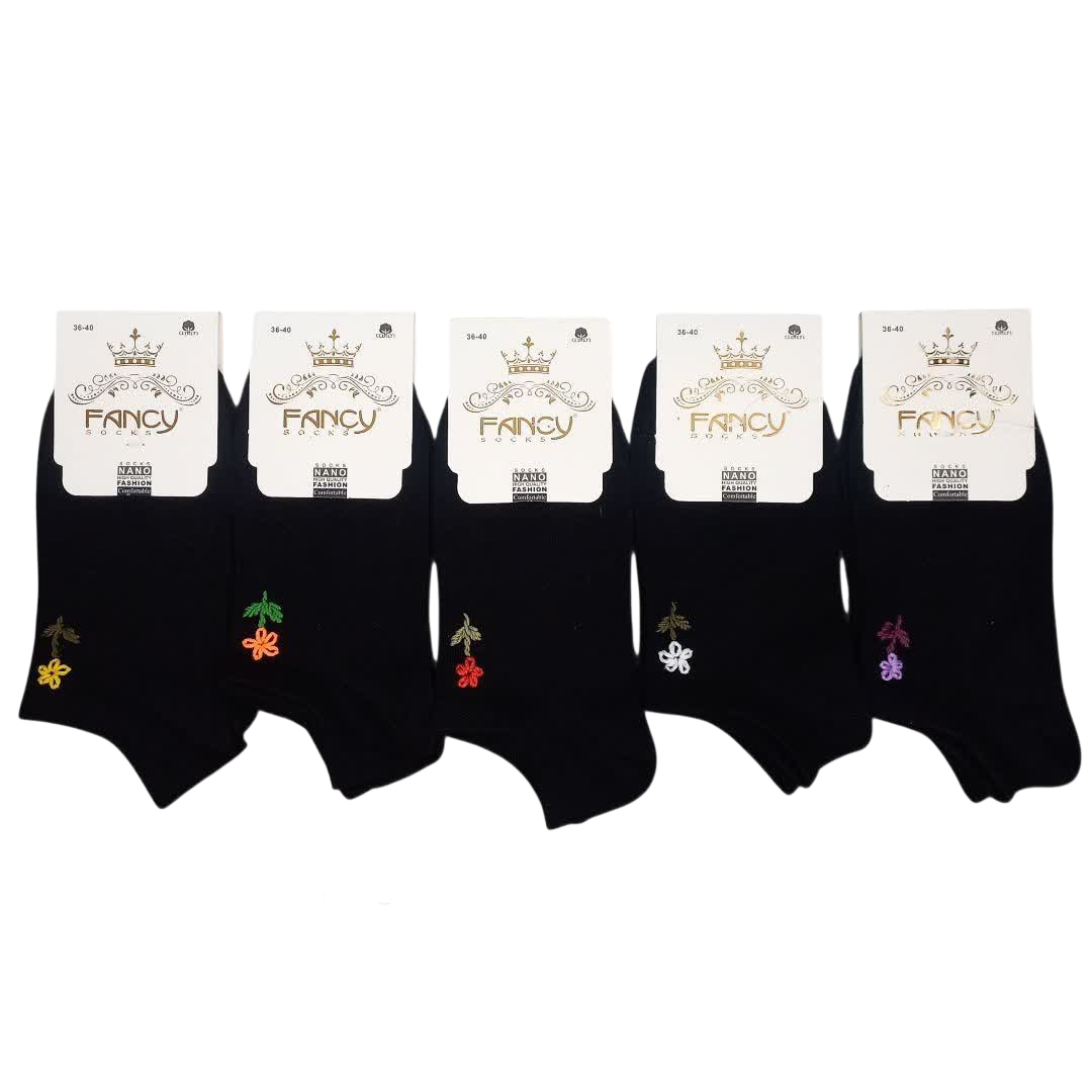 ناموجودجوراب زنانه مچی گلدوزی دستی (۵جفتی) پنبه سایز 36 تا 40، طرح گل 4 پر رنگی