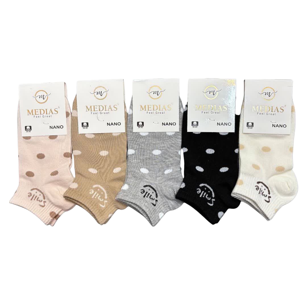 ناموجودجوراب زنانه مچی طرحدار (5جفتی) پنبه سایز 36 تا 40، کش انگلیسی smile خالدار