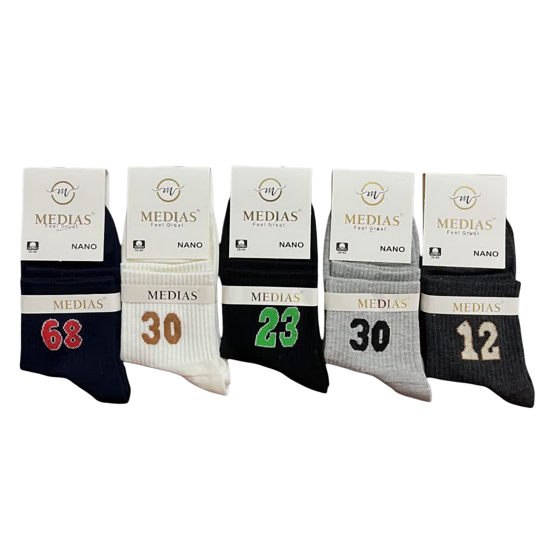ناموجودجوراب زنانه مچی طرحدار (5جفتی) پنبه سایز 36 تا 40، کش انگلیسی بسکتبال 32