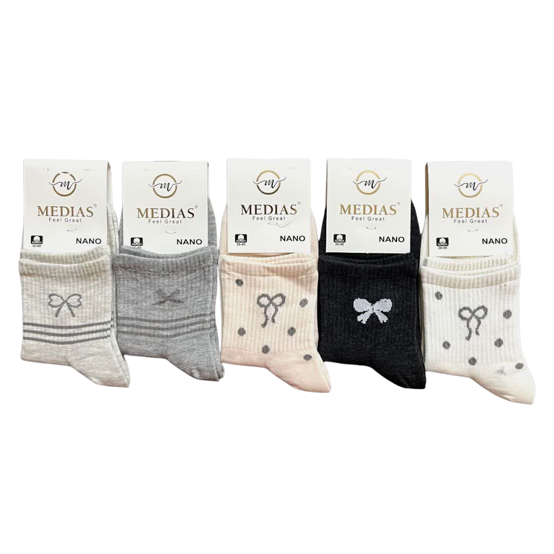 ناموجودجوراب زنانه مچی طرحدار (5جفتی) پنبه سایز 36 تا 40، کش انگلیسی پاپیون تکرار