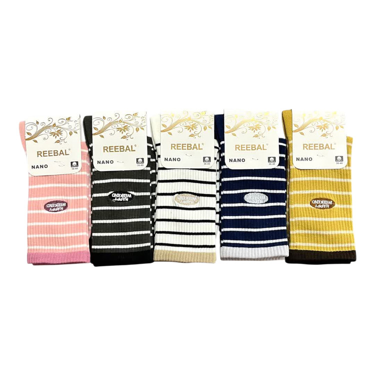 خرید جوراب زنانه ساقدار گلدوزی (5جفتی) پنبه سایز 36 تا 40، طرح Happy Weekend
