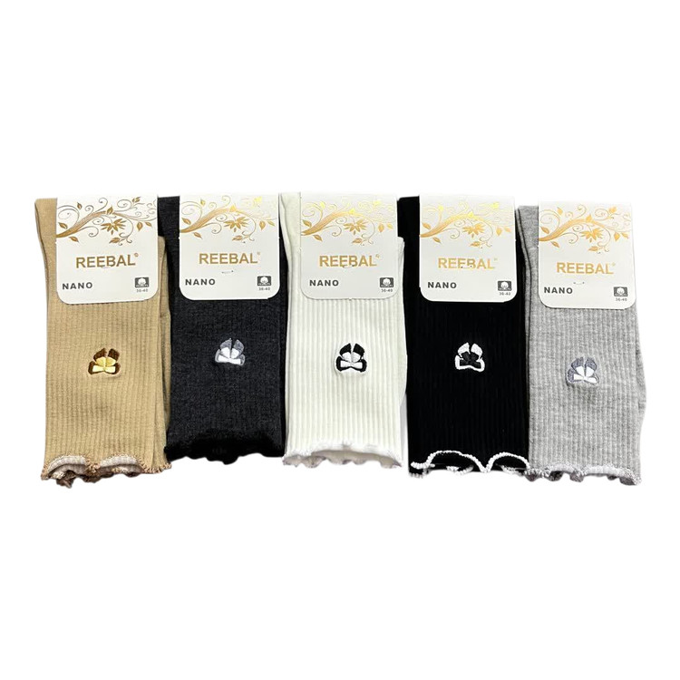 خرید جوراب زنانه ساقدار گلدوزی (5 جفتی) پنبه سایز 36 تا 40، طرح پاپیون