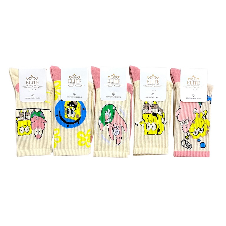 خرید جوراب اسپرت ساقدار فانتزی (5جفتی) نخ ایرانی، سایز 36 تا 44، طرح باب اسفنجی