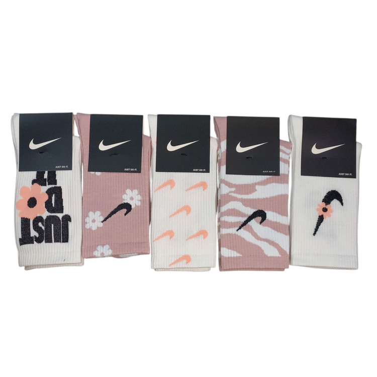 خرید جوراب اسپرت ساقدار فانتزی (5جفتی) نخ ایرانی، سایز 37 تا 43، طرح نایک گل صورتی