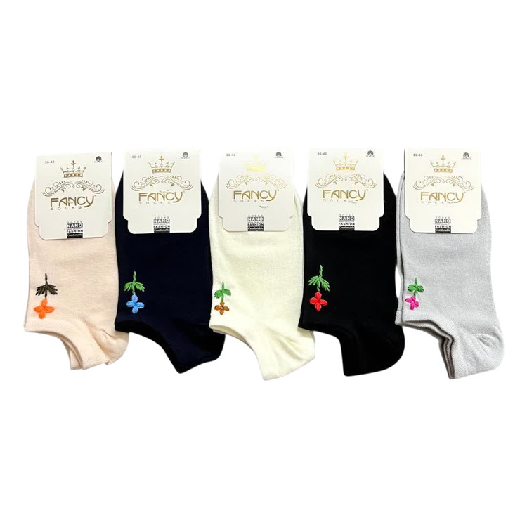 خرید جوراب زنانه مچی گلدوزی دستی (5 جفتی) پنبه سایز 36 تا 40 طرح گل 4 پر رنگی