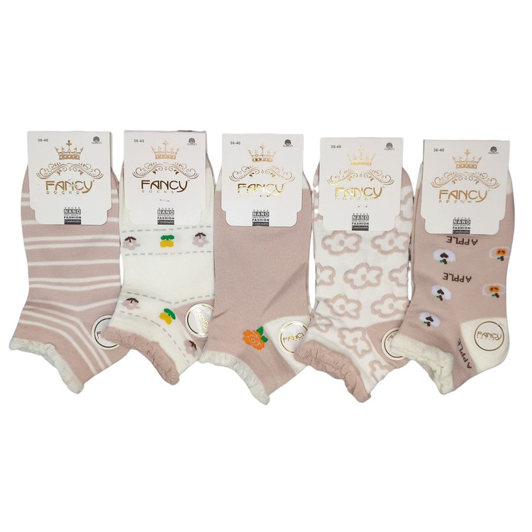 خرید جوراب زنانه مچی طرحدار (5 جفتی) پنبه سایز 36 تا 40 طرح کرم Apple